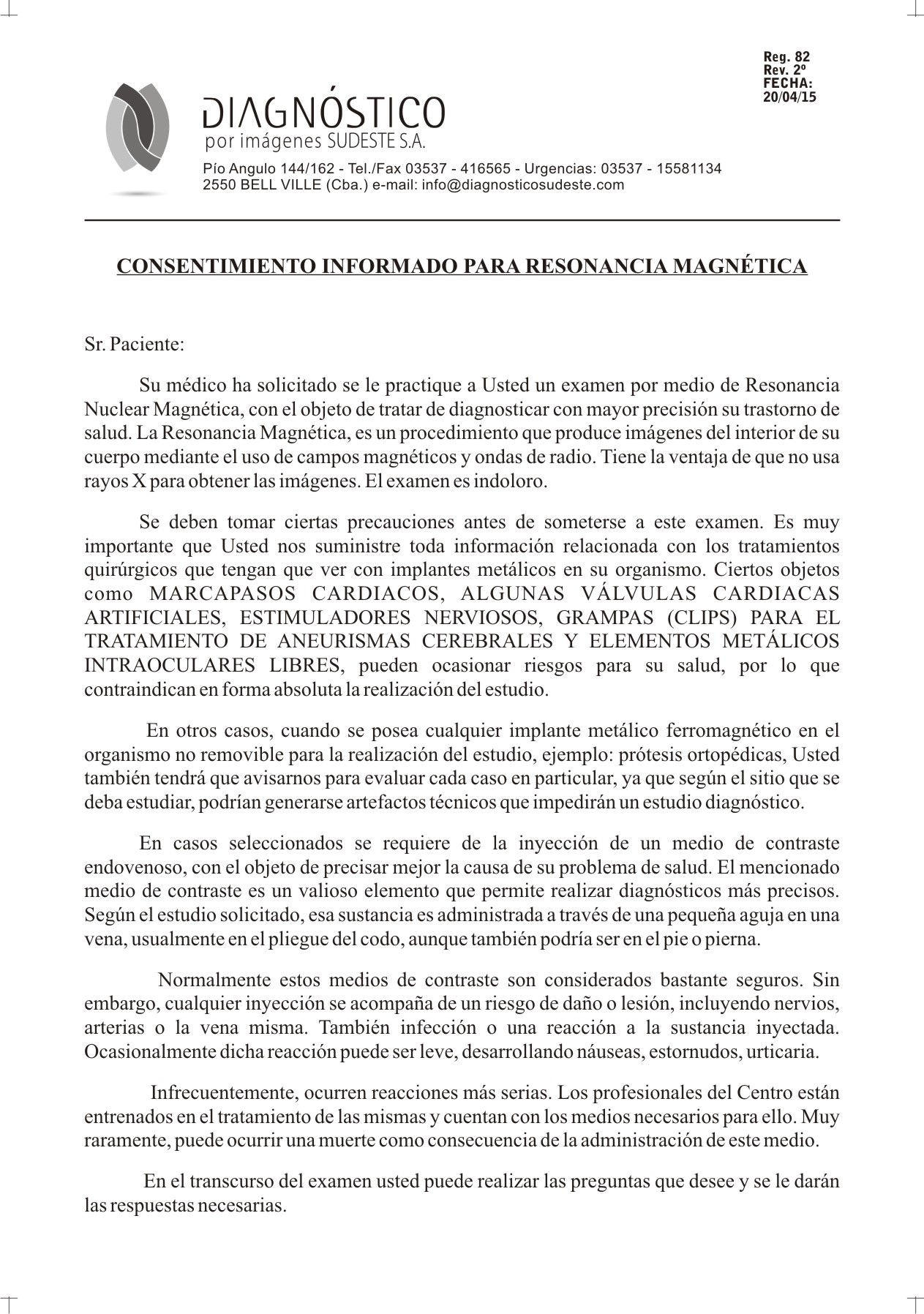 DIAGNÓSTICO POR IMÁGENES SUDESTE S.A.,atento a esta demanda y respaldado por excelentes profesionales de todas las especialidades, constituye un referente imprescindible en el ámbito del Diagnóstico por Imágenes, posicionándose a la vanguardia de los actuales métodos de diagnóstico y técnicas de asistencia terapéutica, capaces de obtener imágenes de altísima calidad en zonas del cuerpo que serían inaccesibles sin provocar daños secundarios: radiación, ultrasonido, resonancia magnética y captación de señales de video a través de fibra óptica.